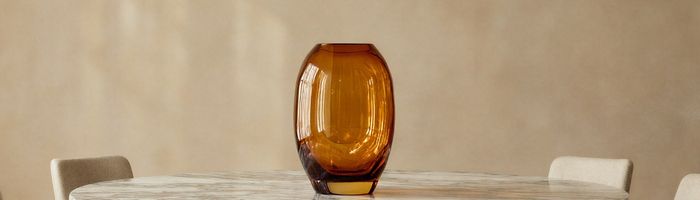 Le verre ambré s’invite dans les objets décoratifs et les luminaires, diffusant une lumière douce et chaleureuse. Associé à des formes sculpturales, il transforme chaque pièce en élément décoratif à part entière.