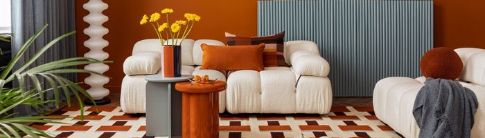 Inspirées des années 70, les couleurs chaudes font un retour remarqué : terracotta, brun, orange, caramel ou ocre apportent une dimension enveloppante aux intérieurs. Utilisées par touches ou sur des pièces fortes, elles renforcent l’identité d’un espace sans l’alourdir.
