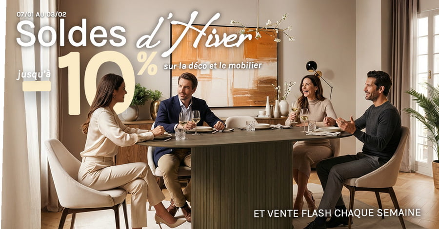 *Promotion valable du 7 janvier au 3 février 2026 incolus. Articles de la gamme mobilier soldés à 10%. Non cumulable avec d'autres offres en cours et hors frais de port.