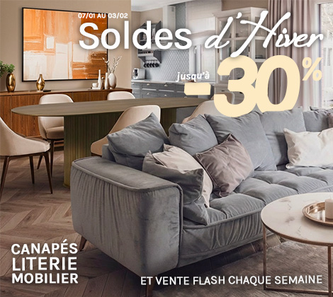*Promotion valable du 7 janvier au 3 février 2026 inclus. Articles de literie soldés jusqu'à 20% sauf sommiers Florence et Céleste exclus des promotions. Ventes flash à -30%. Non cumulable avec d'autres offres en cours et hors frais de port.