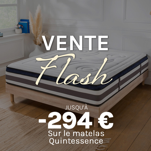 Conditions : du 30 janvier au 1er février 2026, 30% de remise sur le matelas Quintessence (hors ensemble de literie ou prêt à dormir). Hors livraison, offre non cumulable avec les offres en cours.