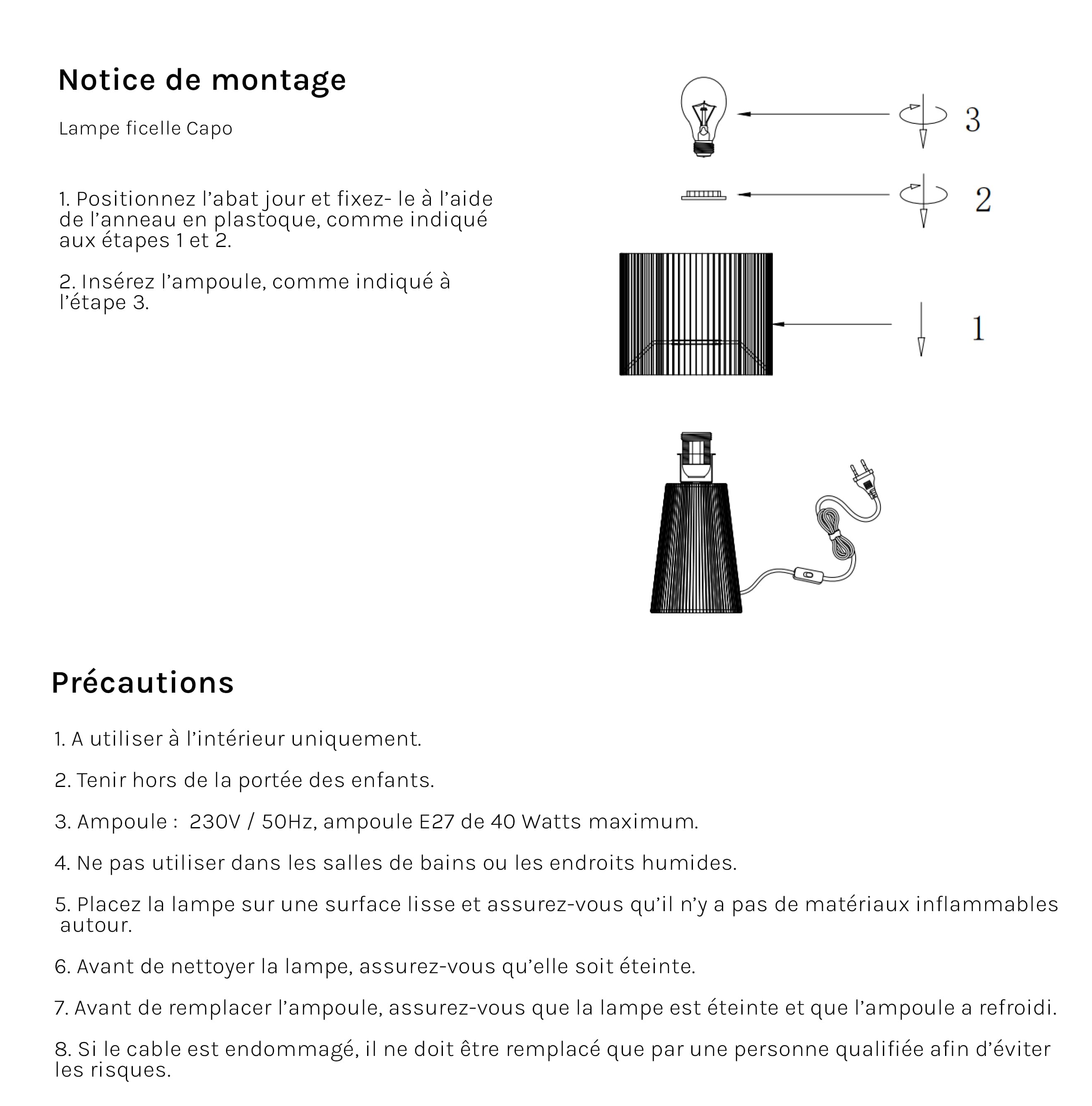 Décoration | Matière | Corde de papier et fil de fer. Ampoule : E27 MAX40W. Non inclus. |