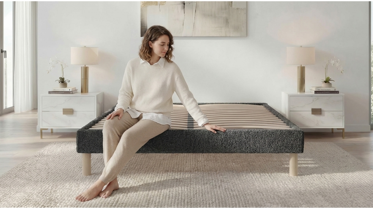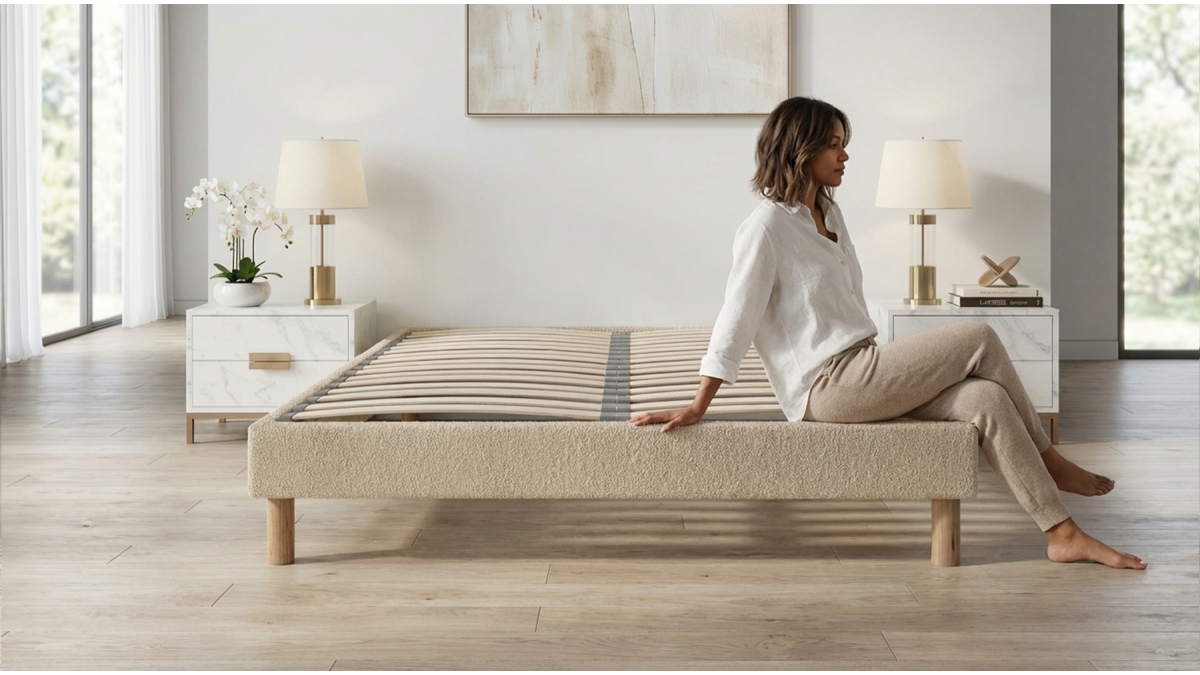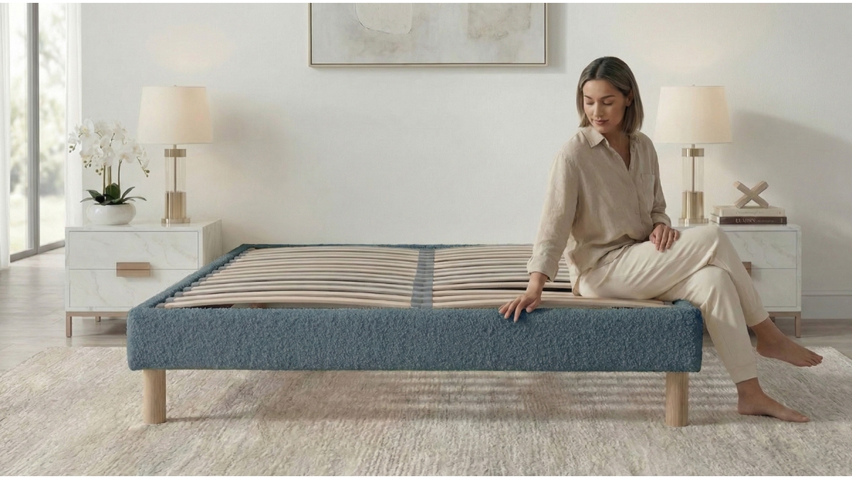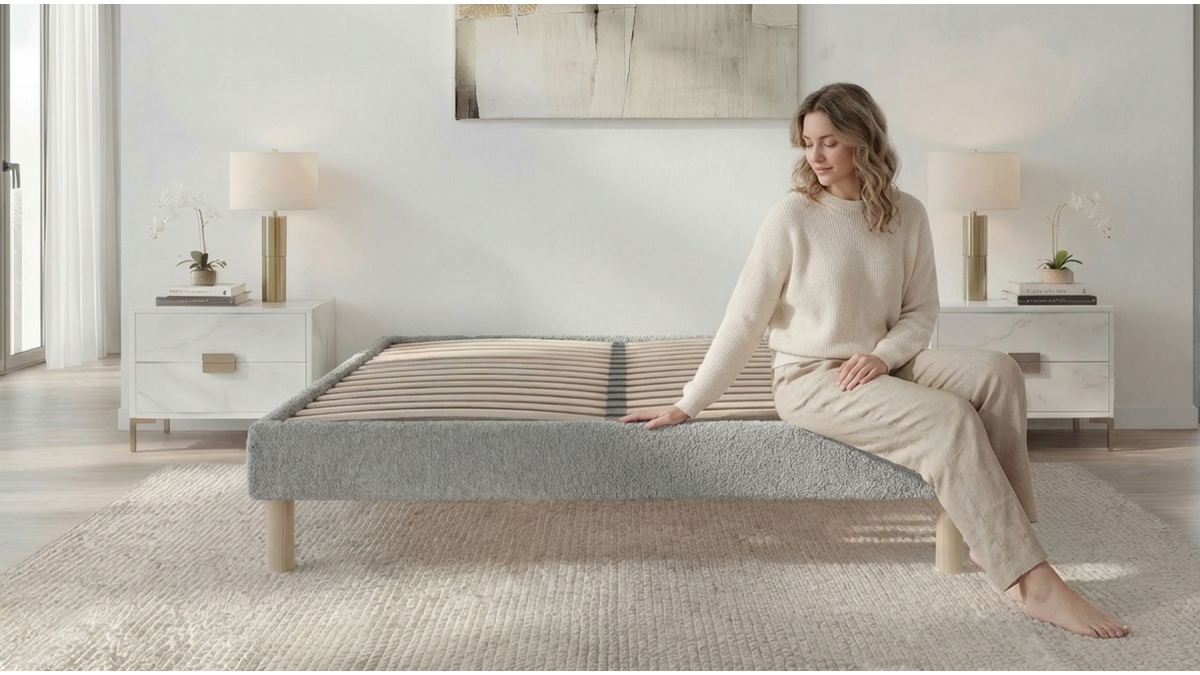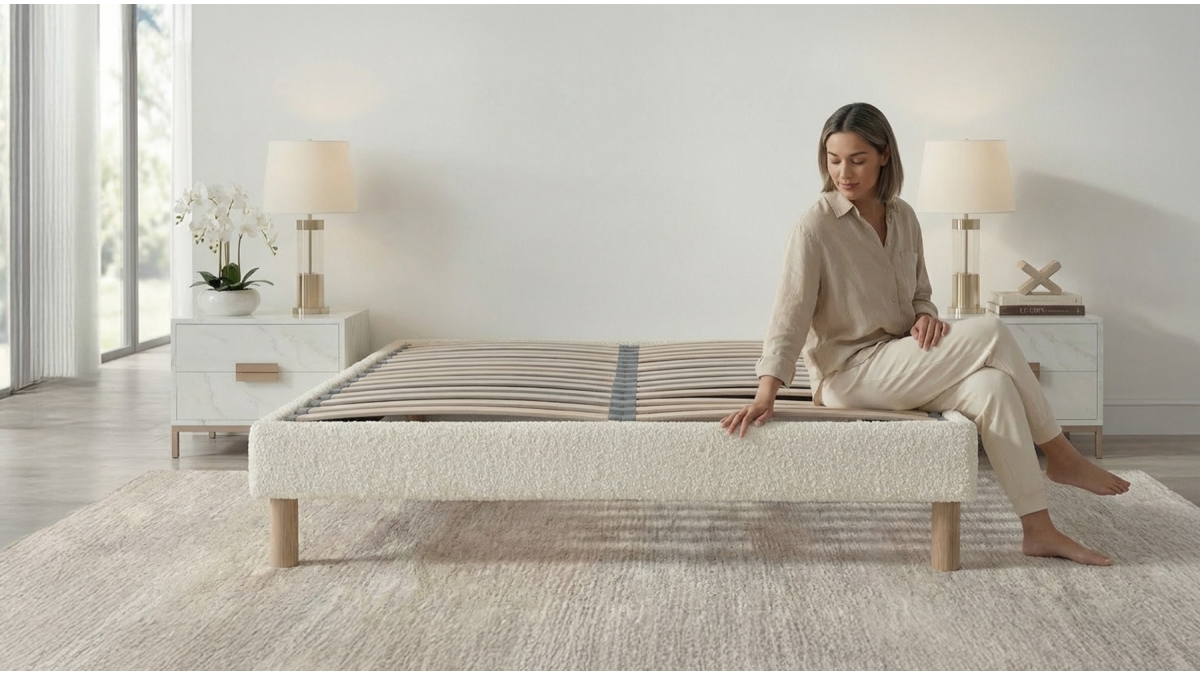 Apportez une dimension cocooning à la chambre avec ce sommier bouclette à lattes. Son revêtement en laine bouclée vous transporte sur les nuages. Ce matériau tendance apporte du caractère au lit et à la chambre. Le système tri-lattes assure une bonne souplesse et une bonne résistance pour le support de votre matelas. De plus, profitez de ses lattes apparentes pour une ventilation optimale de la literie. La circulation de l’air dans le matelas favorise une meilleure hygiène et en améliore la durée de vie. (Longs et courts pans certifiés PFEC | WOOD.BE-COC-001502)