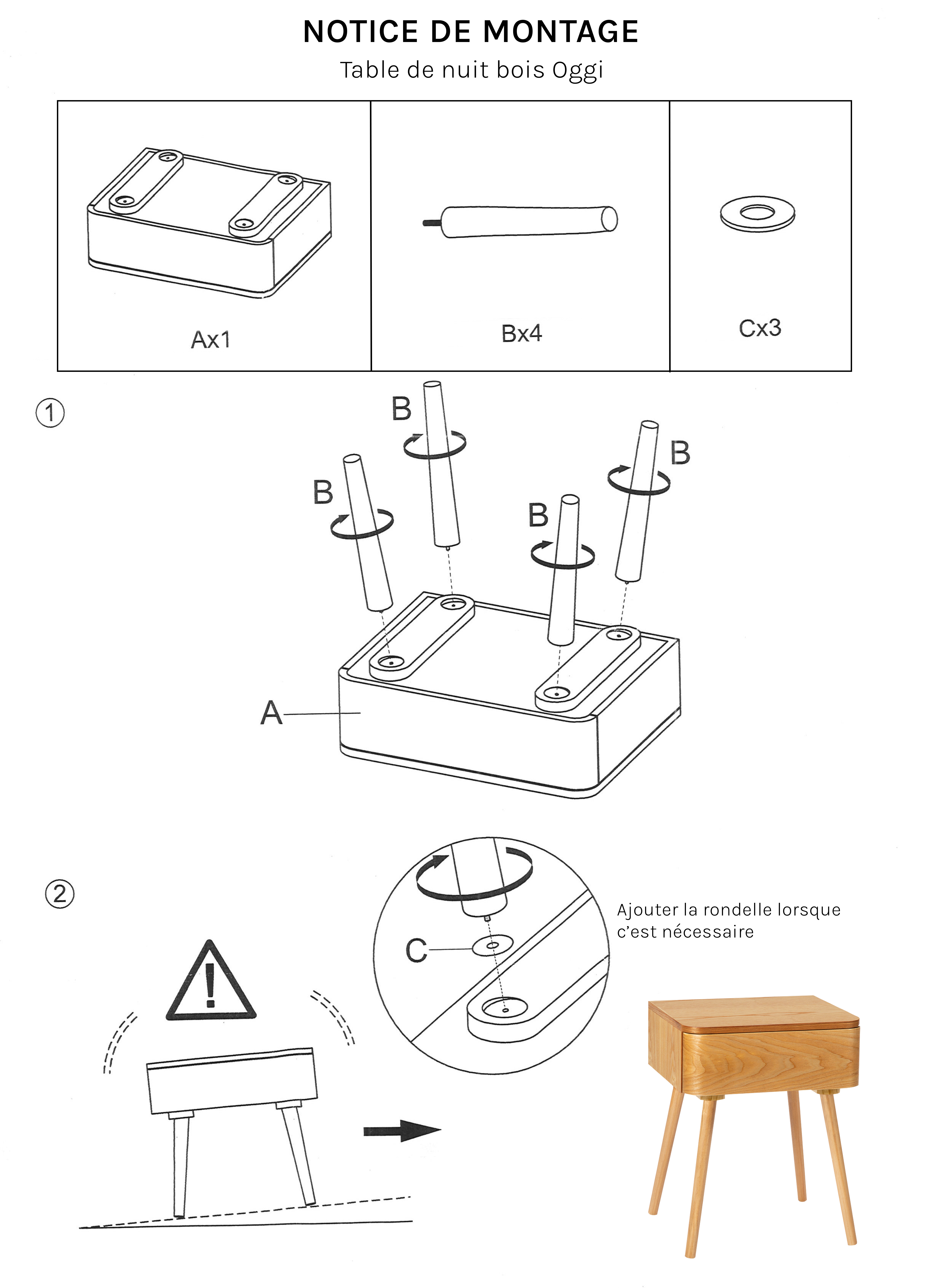 - 3 rondelles sont fournies pour équilibrer le meuble au besoin